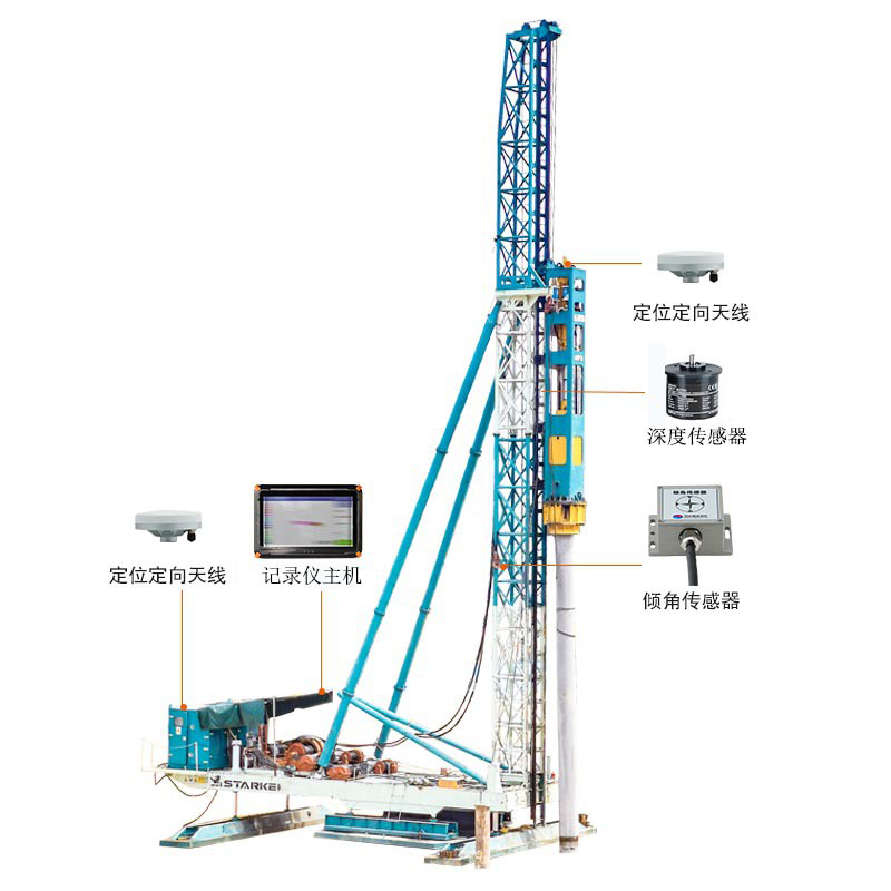 針對靜壓式管樁、錘擊式管樁施工特點(diǎn),能夠?qū)崿F(xiàn)施工放樣引導(dǎo)、施工作業(yè)輔助、施工過程記錄、施工數(shù)據(jù)網(wǎng)絡(luò)上報(bào)功能。記錄參數(shù)包括:經(jīng)緯度、高程、樁長、垂直度、配樁信息(配樁節(jié)數(shù)、各節(jié)長度)、沉樁速度、壓樁力、錘擊數(shù)(錘擊貫入度)等。設(shè)備最小記錄單位細(xì)達(dá)1秒。