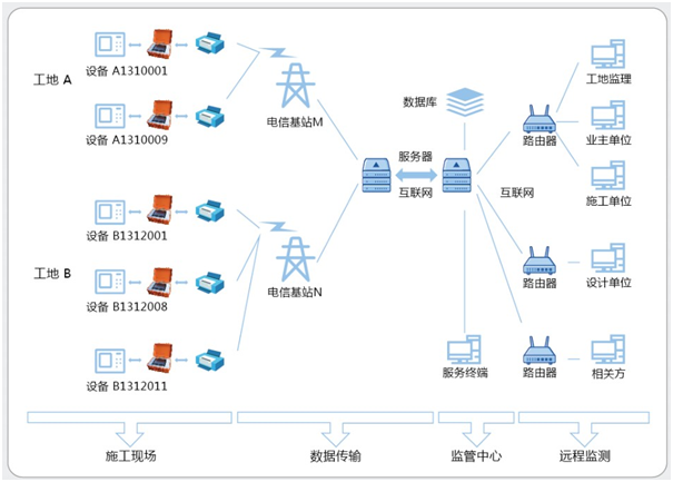現場數據采集系統→ 數據處理系統→ 監管中心→ 遠程監測客戶端;